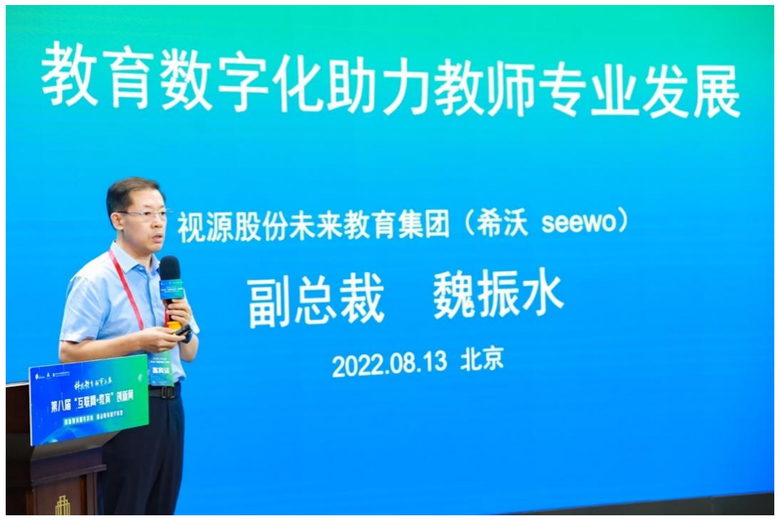 創(chuàng)新教育服務(wù)供給,推動(dòng)教育數(shù)字轉(zhuǎn)型。近日,由北京市海淀區(qū)人民政府主辦、中關(guān)村互聯(lián)網(wǎng)教育創(chuàng)新中心承辦的第八屆“互聯(lián)網(wǎng)+教育”創(chuàng)新周在北京開幕,來自教育行業(yè)主管部門、研究機(jī)構(gòu)和企業(yè)的代表及專家學(xué)者,將在7天內(nèi)就教育數(shù)字化轉(zhuǎn)型新路徑進(jìn)行深入研討。在會(huì)議開幕式上,作為技術(shù)創(chuàng)新力量,視源股份未來教育集團(tuán)(希沃) 副總裁魏振水發(fā)表主題演講,分享了希沃在推進(jìn)教育數(shù)字化、助力教師專業(yè)發(fā)展方面的思考和實(shí)踐。