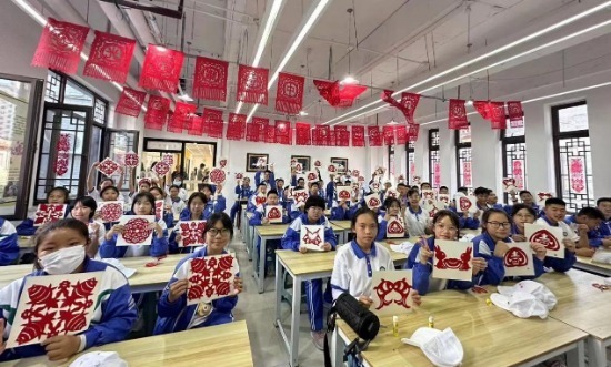 在研學(xué)基地,學(xué)生們先后學(xué)習(xí)了剪紙、團(tuán)扇、皮雕、糖人糖畫(huà)、扎染、活字印刷等傳統(tǒng)工藝品的制作方法,重拾傳統(tǒng)技藝,領(lǐng)略手工之美,感受中國(guó)傳統(tǒng)手工藝的魅力。