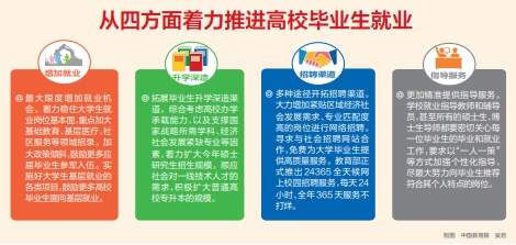 加大重點領(lǐng)域招錄,鼓勵畢業(yè)生入伍參軍,鼓勵面向基層就業(yè),加快完善落實就業(yè)創(chuàng)業(yè)政策