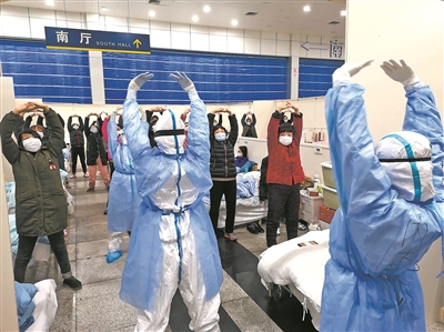 對(duì)于大多數(shù)醫(yī)護(hù)人員、患者和醫(yī)院管理者來說,方艙醫(yī)院都是新鮮事物,需要一個(gè)適應(yīng)、調(diào)整、改進(jìn)的過程。幾天下來,方艙醫(yī)院里的氣氛越來越好,有跳廣場舞的,有看書學(xué)習(xí)的,還有練太極拳的。我感覺,唯一的遺憾是沒有洗澡的條件。