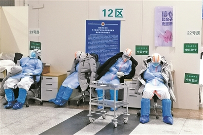 醫(yī)護(hù)人員每天要連續(xù)工作6個(gè)小時(shí)。在這6個(gè)小時(shí)里,他們不能吃飯、喝水,也不能上廁所。雖然當(dāng)班時(shí)間是6個(gè)小時(shí),但從上班穿防護(hù)服到下班脫掉防護(hù)服,整個(gè)過程需要更長的時(shí)間。
