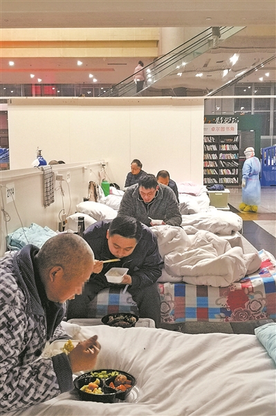 2月3日,由于病床數(shù)量嚴(yán)重不足,武漢開始改造啟用臨時(shí)性的方艙醫(yī)院。位于武漢國際會(huì)展中心的江漢方艙醫(yī)院僅用2天時(shí)間建成。
