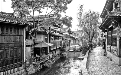 這篇文章別具一格,它巧妙地以一滴水作為切入點,這一滴水既是全文的行文線索,也是麗江自然風光、歷史沿革和人文風貌的見證者。這一滴水從冰雪融化開始,走過麗江壩,過草甸,落入落水洞,從黑龍?zhí)缎褋?,順著玉河來到四方街。這一滴水從水車上滴落,從中河進入四方街:它先是來到一些店鋪,然后深入麗江人的庭院,它目睹了麗江人的愜意生活。最后它又回到水流中,流出古城,匯入金沙江。毫無疑問,對文章行蹤的梳理,了解麗江古城的變遷和風土人情,感受麗江人民的幸福生活,體驗作者對麗江的深厚感情,這是我們閱讀的重點,這是第二個教學內(nèi)容。