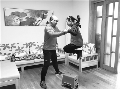在這場(chǎng)舉國上下的“大閉關(guān)”中,許多體育教師都積極行動(dòng)起來,為抗疫貢獻(xiàn)自己的力量。江蘇省的潘雪峰體育名師工作室組織了“不見面運(yùn)動(dòng)會(huì)——客廳運(yùn)動(dòng)”活動(dòng)展播,為宅家人群提供了豐富多樣的運(yùn)動(dòng)指導(dǎo)。圖為江蘇省南通中學(xué)潘雪峰老師在家與孩子一起運(yùn)動(dòng)。