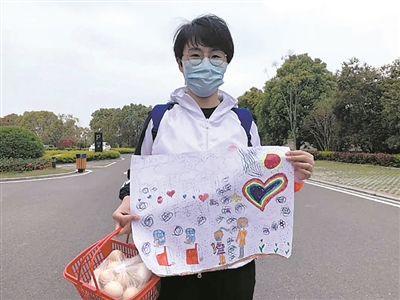 有人塞給張靜靜一籃煮雞蛋——按照當(dāng)?shù)仫L(fēng)俗,這只送給最親的人。一位小朋友送給她自己畫的畫,畫面上滿是醫(yī)護(hù)人員戰(zhàn)勝病毒的場景。“一定再回黃岡這個家,感受春暖花開?!睆堨o靜在手記中寫道。