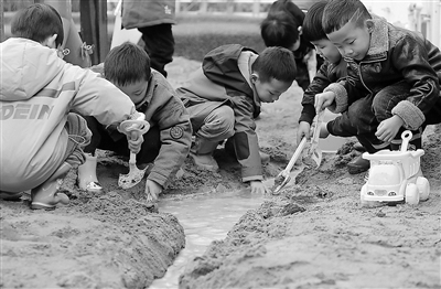 課程從幼兒的游戲中融入。沙池尋寶、快樂(lè)騎車、創(chuàng)意小畫家、勤勞小木工……教師洞察幼兒的需要,提供適宜的支持,讓幼兒在與環(huán)境、材料充分的互動(dòng)中,用自己的方式進(jìn)行創(chuàng)造,表達(dá)自我感受,逐步建立自己的經(jīng)驗(yàn)體系。