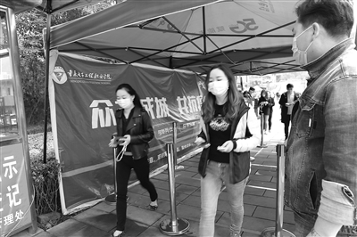 應(yīng)急演練主要模擬學(xué)生在入校報到和在學(xué)生宿舍出現(xiàn)發(fā)熱等癥狀時,學(xué)校的防控應(yīng)急處理流程,主要涉及學(xué)生異常狀況發(fā)現(xiàn)、轉(zhuǎn)運(yùn)、隔離、報告、消殺和師生錯時就餐6個場景。在入校演練環(huán)節(jié),由帶班領(lǐng)導(dǎo)、學(xué)管部門人員、醫(yī)護(hù)人員、安保人員組成的入校檢測隊伍提前上崗,組織“學(xué)生”在校門口分成四隊前后保持1.5米以上距離(佩戴口罩)有序排隊,進(jìn)入體溫檢測通道,接受檢測組的體溫檢測,在出示校園卡及“渝康碼”后有序入校。體溫異常者,在校門外“臨時觀察區(qū)”等候醫(yī)護(hù)人員復(fù)測,體溫仍然高于37.3℃的,詢問現(xiàn)病史及流行病學(xué)史,上報校防控辦,由值班輔導(dǎo)員陪同,乘坐學(xué)校指定車輛至陳家橋醫(yī)院發(fā)熱門診就診。
