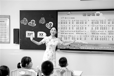 ①深圳市光明區(qū)尚美小學音樂教師閻婕帶領學生在唱中樂,在唱中學。圖為三年級的學生跟隨教師陶醉在春天的“嘀哩哩”中。