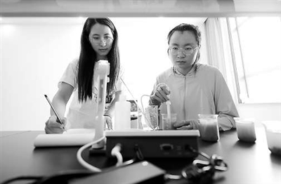 8月21日,陜西省定邊縣生態(tài)氣象聯(lián)合實(shí)驗(yàn)室里,張夢(mèng)婕(右)在西北農(nóng)林大學(xué)博士生指導(dǎo)下進(jìn)行土壤理化特性測(cè)定。靳軍 本報(bào)記者 張學(xué)軍 攝