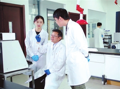 實(shí)驗(yàn)室主任張友明教授(中)在指導(dǎo)學(xué)生做實(shí)驗(yàn)。學(xué)校供圖