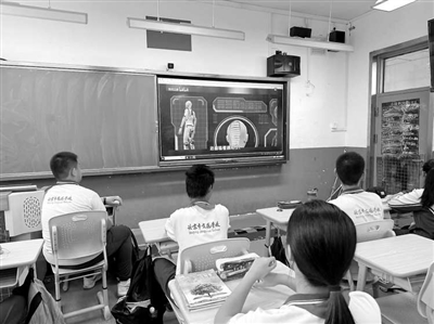 北京市京源學(xué)校教師在錄制AI相關(guān)內(nèi)容的主題班會。 學(xué)校供圖