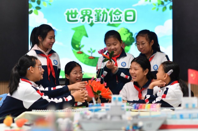 10月31日是世界勤儉日,山東省青島市市北區(qū)鄭州路小學(xué)開展“變廢為寶倡節(jié)約”主題教育活動(dòng),孩子們通過利用廢舊物品手工制作、節(jié)約糧食話勤儉等多項(xiàng)內(nèi)容,以實(shí)際行動(dòng)變廢為寶,養(yǎng)成勤儉節(jié)約的好習(xí)慣。中國(guó)教育報(bào)-中國(guó)教育新聞網(wǎng)通訊員 王海濱 攝