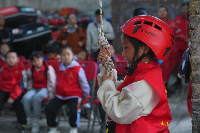 2025年11月1日,在重慶市北碚區(qū)縉云應(yīng)急志愿服務(wù)隊隊部,共青團(tuán)重慶市北碚區(qū)委員會、北碚區(qū)青少年活動中心組織開展“揚(yáng)夢護(hù)航”沉浸式青少年自護(hù)教育示范性活動,25組“縉云紅孩子”志愿服務(wù)隊親子家庭參加了心肺復(fù)蘇、高空繩降、穿戴救生衣體驗活動,以提升青少年自救能力和自我保護(hù)意識。(中國教育報-中國教育新聞網(wǎng) 通訊員 秦廷富 攝)