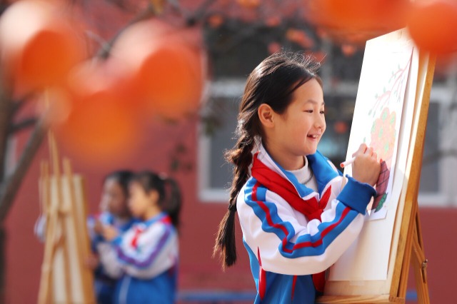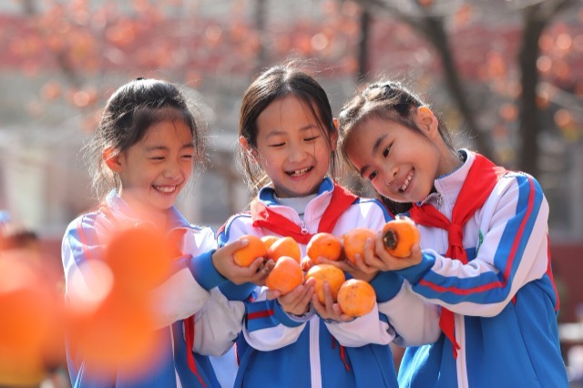 深秋時節(jié),山東省高密市恒濤實驗小學的柿子林里就掛滿了紅彤彤的柿子,猶如一盞盞小燈籠,為校園增添了一抹亮麗的色彩。每到大課間或課后延時服務(wù)時間,孩子們在柿子林里摘柿子、畫畫、嬉戲、讀書,與大自然親密接觸,樂享金秋好時光。(中國教育報-中國教育新聞網(wǎng) 通訊員 李海濤 攝)