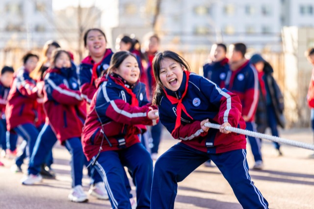 學(xué)生在操場(chǎng)上進(jìn)行拔河比賽。通訊員 丁根厚 攝