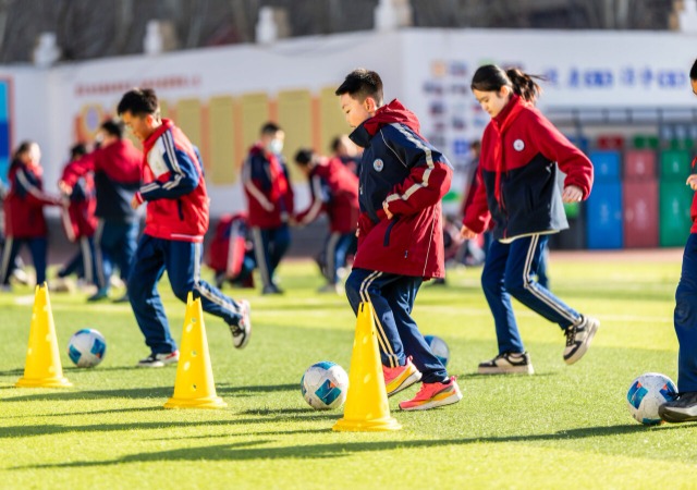 學(xué)生在操場(chǎng)上進(jìn)行足球技能訓(xùn)練。通訊員 丁根厚 攝