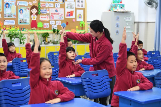 為豐富校園文化生活,釋放學(xué)生壓力,今年以來,貴州省貴陽市南明區(qū)花果園第三小學(xué)的舞蹈老師把美育元素與體育鍛煉相融合,為學(xué)生們創(chuàng)編了多套“課桌舞”。伴隨著動(dòng)感旋律,學(xué)生們以手勢為舞,在活躍課間氣氛的同時(shí)調(diào)節(jié)情緒、活躍身心。中國教育報(bào)-中國教育新聞網(wǎng)通訊員 趙松 攝