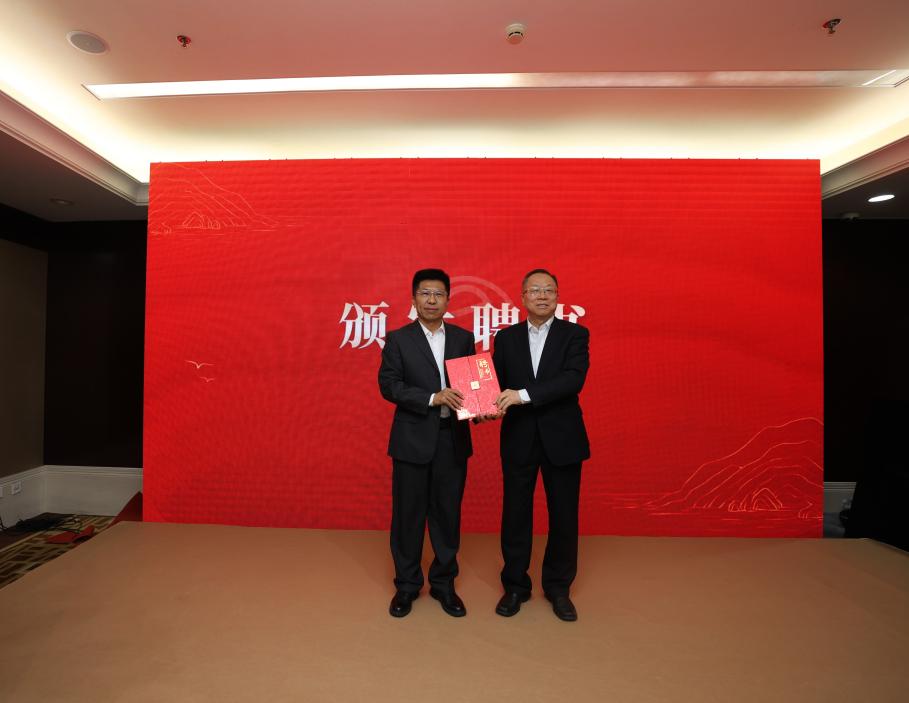 翟博常務(wù)副會長為新任理事長范緒鋒頒發(fā)聘書。