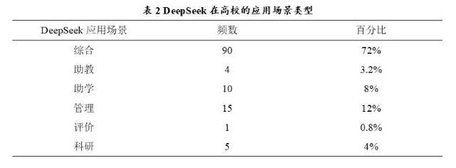 從當(dāng)前統(tǒng)計(jì)數(shù)據(jù)來看,高校對(duì)DeepSeek模型的應(yīng)用以綜合性部署為主,占比高達(dá)72%,涵蓋教學(xué)支持、科研輔助、教學(xué)管理與學(xué)習(xí)評(píng)價(jià)等多個(gè)功能,顯示出高校在頂層設(shè)計(jì)上對(duì)大模型賦能教育的系統(tǒng)性思維。相較之下,聚焦于助教(3.2%)、管理(12%)、科研(4%)、評(píng)價(jià)(0.8%)與助學(xué)(8%)的單一功能部署比例較低。不同類型高校在部署DeepSeek的場(chǎng)景選擇上存在差異,可能受制于組織數(shù)字能力、學(xué)科布局結(jié)構(gòu)、教師數(shù)字素養(yǎng)等多重變量。后續(xù)研究可結(jié)合問卷與個(gè)案訪談,進(jìn)一步識(shí)別影響各類場(chǎng)景部署優(yōu)先級(jí)的深層因素。未來應(yīng)進(jìn)一步推動(dòng)各場(chǎng)景應(yīng)用之間的協(xié)同、數(shù)據(jù)互通與機(jī)制聯(lián)動(dòng),在保障數(shù)據(jù)安全與倫理合規(guī)的前提下,建構(gòu)以大模型為核心的教育數(shù)智生態(tài)體系。