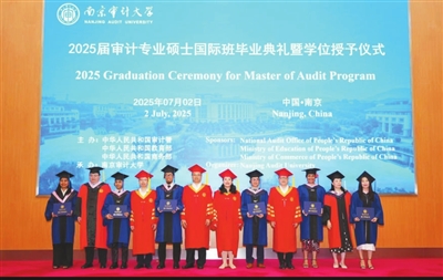 ②南京審計(jì)大學(xué)舉辦2025屆審計(jì)專業(yè)碩士國際班畢業(yè)典禮暨學(xué)位授予儀式。 學(xué)校供圖
