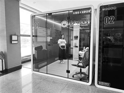 ①在東北師范大學,學生正在使用師范生實習實訓智能靜音艙練習講課。