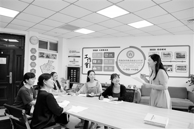 ②河南省實(shí)驗(yàn)小學(xué)的班主任們進(jìn)行集體教研。
