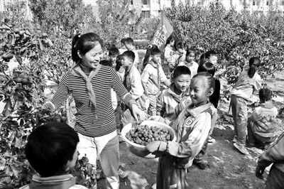 ②學(xué)生們在戶外進(jìn)行瓜果采摘。 菏澤市牡丹區(qū)第二實(shí)驗(yàn)小學(xué)供圖