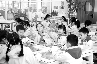 浙江省杭州采荷第一小學(xué)教育集團(tuán)新城實(shí)小學(xué)生在進(jìn)行剪紙創(chuàng)作。