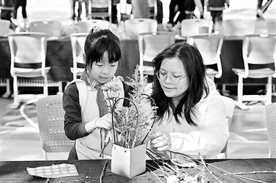 ?珠海市香洲區(qū)第十八小學(xué)開(kāi)展的親子花藝活動(dòng)現(xiàn)場(chǎng)。 珠海市教育局供圖