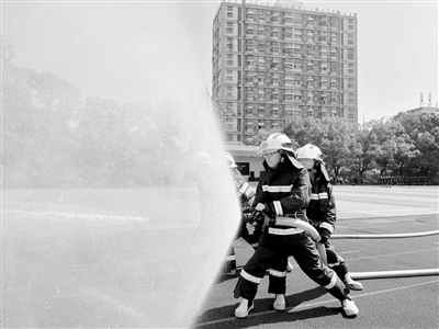 江蘇聯(lián)院中華中專辦學(xué)點消防救援技術(shù)專業(yè)學(xué)生進(jìn)行消防車出水操作。本文圖片均為學(xué)校供圖