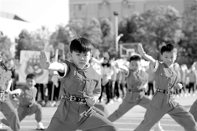 張槎中心小學(xué)學(xué)生社團(tuán)在表演武術(shù)。 李卓煌 攝