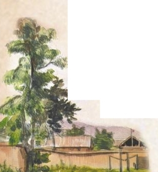 西南聯(lián)大新校舍一角。原畫為趙寶煦1946年6月10日作,趙陽提供。