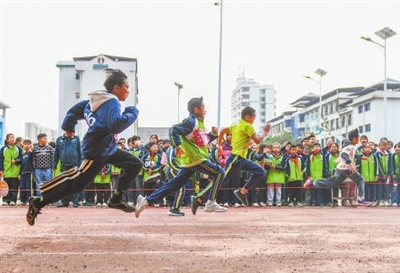 湖南省永州市道縣第四小學學生在參加跑步比賽。 蔣克青 陳敏敏 攝