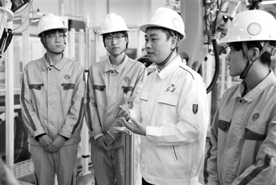 長春汽車職業(yè)技術大學優(yōu)秀校友、全國人大代表楊永修(右)在校中廠開展現(xiàn)場教學。