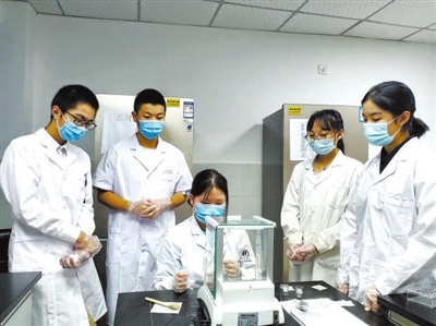 重慶八中學(xué)生在進(jìn)行科學(xué)實(shí)驗(yàn)。重慶市教科院 供圖
