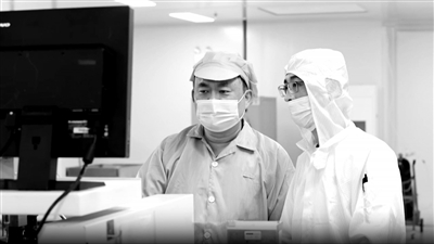 池州學(xué)院半導(dǎo)體器件制造與應(yīng)用微專業(yè)學(xué)生(右)在車間接受企業(yè)導(dǎo)師指導(dǎo)。學(xué)校供圖