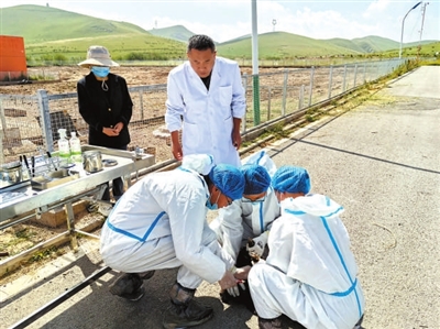山東畜牧獸醫(yī)職業(yè)學(xué)院師生在青海牧場(chǎng)進(jìn)行選育采樣。 山東省教育廳供圖