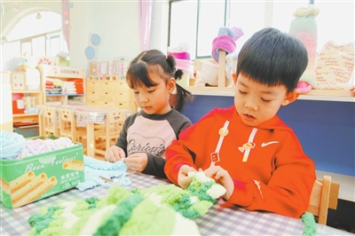 寒冬到來,內(nèi)蒙古包頭市昆都侖區(qū)包鋼幼教管理處第八幼兒園的活動室里暖意融融。孩子們正專注地穿梭針線,五彩毛線在小手中翻飛纏繞,一條條精致的圍巾、一頂頂可愛的帽子逐漸成型,為冬日增添了別樣溫暖。這項手工編織活動已在園里延續(xù)兩年。該園以生活化活動為載體,讓孩子們在實踐中提升能力,在關(guān)愛中學會感恩。圖為孩子們在為家人和好朋友織圍巾。聶文娟 攝